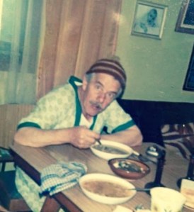 Pop eating his homemade soup, which he made every day.