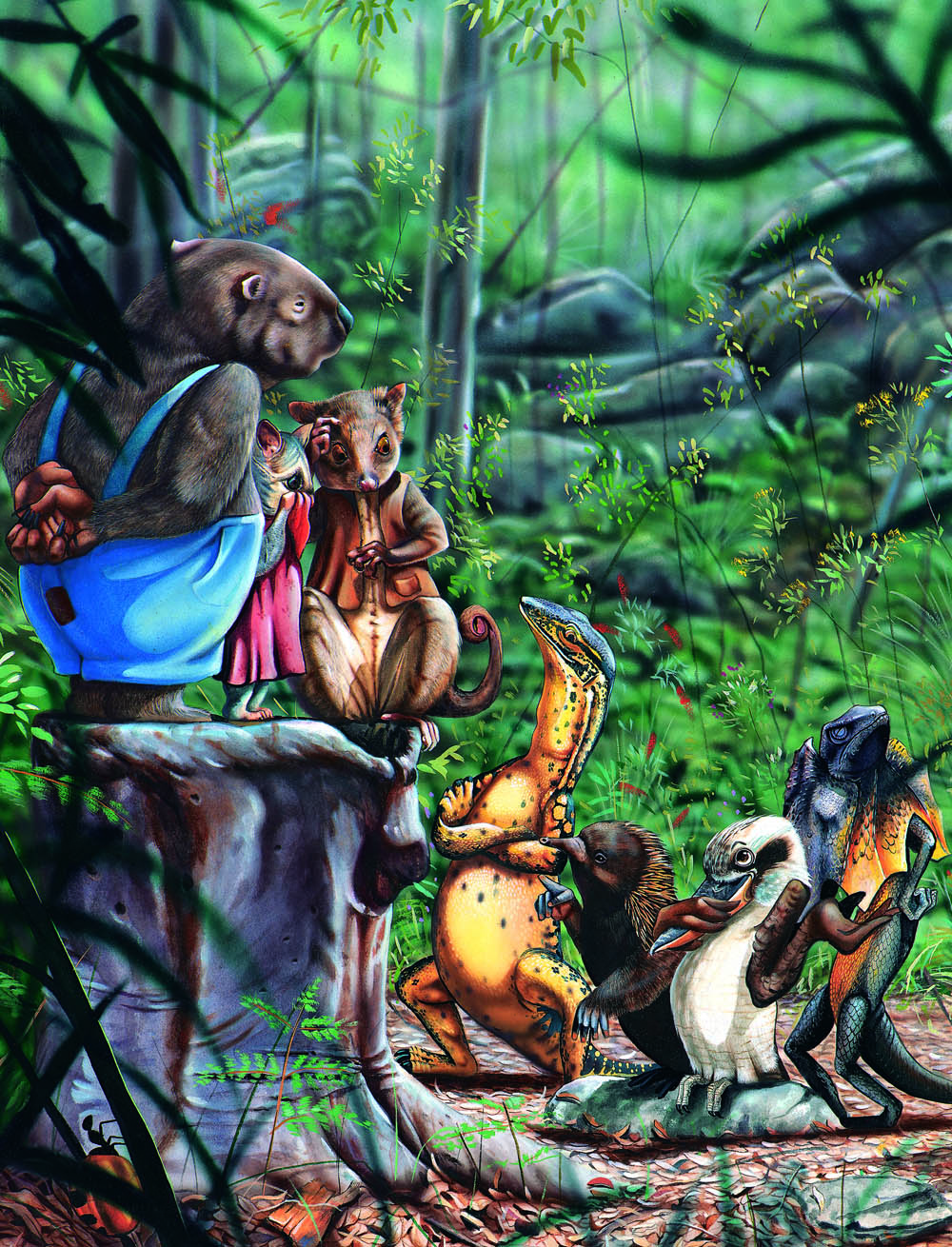 Wombat’s compassion gives him and his friends the courage to venture beyond Bollygum, and take Little Possum back to her family. So Wombat, Ring-tail, Goanna, and Little Possum head off with Cockatoo flying above. Like every great adventure, their journey to the city is filled with all sorts of mishaps and wonders.